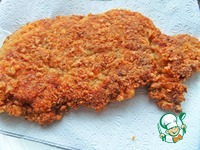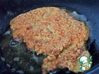 Окунуть свинину в льезон, перенести в сухарную панировку. |