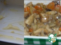 Форму смазать маслом, выложить в нее обжареные грибы. (извиняюсь за мутное фото, грибы парили..) |