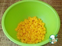 Тыкву помыть, почистить, удалить семена и нарезать кубиком (2х2 см). Часть (примерно 3 горсточки) отложить, остальное потушить с 2 ст. л. воды до мягкости. |