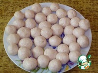Руки и тарелку, на которую будем выкладывать фрикадельки, смазать растительным маслом. Масляными руками из готового фарша скатать шарики небольшого размера (у меня около 3-4 см в диаметре). |