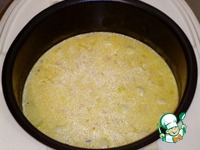 Готовую тыкву размять ложкой (я готовлю в мультиварке, поэтому использую деревянную ложку). Кстати, в мультиварке я обычно готовлю на режиме "Выпечка", на нём всё быстрее получается. :) |