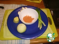 Утром берем 6 зубчиков чеснока, имбирь 4-5 см, в зависимости от толщины корня и любви к данному продукту, 2 столовые ложки красного жгучего перца и одну ст. л. паприки. В классике нужно брать красный перец хлопьями, но я не нашел. 1 ст. л сахара и 3-4 ст. л соевого соуса (куда-же без него)