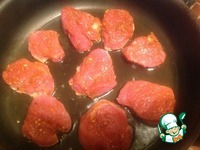 Нагрейте сковороду на среднем огне. Добавьте масло и когда оно хорошенько разогреется, положите в него свиные медальоны. |