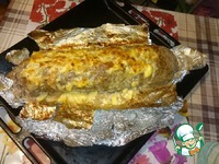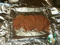Смазываем фольгу подсолнечным маслом. Выкладываем фарш по середине. |