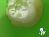 Смешаем венчиком яйцо, сметану и сгущенное молоко. |