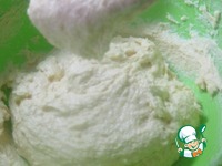 Добавляем два вида муки и разрыхлитель теста. Тщательно перемешиваем. |