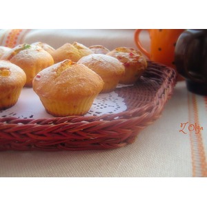 Описание: Солнечные кексы с цукатами! Тесто на сметане с добавлением сгущенного молока и кукурузной муки сделали его нежным, насыщенным, пористым, приятного цвета!