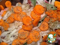 Добавить все специи: лавровый лист, перец черный горошком, чабер ( он очень подходит к кролику!), прованские травы и морскую соль. |