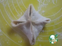 Затем защипываем края, двигаясь от внешних уголков к центру. |