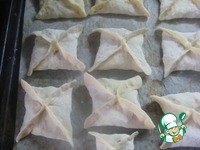 Выкладываем конвертики на противень, застеленный пергаментом, и оставляем отдохнуть еще на 30 минут, накрыв салфеткой. |