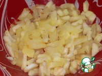 Очистить яблоки (300 г) от кожуры и семечек. Нарезаем их небольшими кусочками и отправляем в микроволновку на 2-3 минуты. Яблоки должны стать мягкими. |