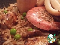 Описание: Такую паэлью состоящую из двух видов мяса и различных морепродуктов в Тунисе готовят по праздникам. Это не сложно, но очень ароматно и вкусно.