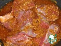 Погрузить мясо в полученную массу так, чтобы куски были покрыты смесью со всех сторон. Оставить на 1 час. |
