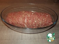 Расстелить фольгу и распределить на ней фарш. На фарш выложить пластики ветчины и листы савойской капусты. |