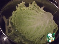 Листы савойской капусты опустить минут на пять в кипящую воду. |