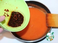Затем выливаем соевую смесь, добавляем соль и периодически перемешиваем, пока соус не загустеет до средней густоты. Когда соус был готов, я его процедила через сито. |