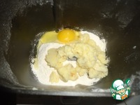 Тесто мне замешивала моя помощница- хлебопечка. Добавить в ведро все ингредиенты и поставить на замес. |