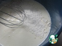 Постепенно всыпая мучную смесь, перемешиваем тесто до однородного состояния. Количество муки регулируем по ходу замешивания, тесто должно быть чуточку гуще, чем на оладьи. |
