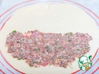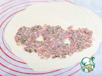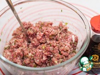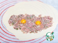 А теперь обещанная начинка от Карима. Он готовил для наших мужчин начинку с мясным фаршем, орехами и яйцами. В слое мясного фарша ложкой делал два углубления |