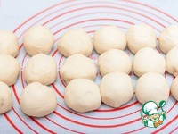 Разделите тесто на 20 одинаковых частей. У меня вес каждого шарика 50 гр. Шарики теста обязательно накрывайте пленкой, они быстро сохнут. |