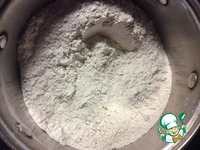 На следующий день смешать в кастрюле 325 г ржаной муки и 225 г пшеничной. |