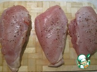 Куриное филе натрите солью и перцем, оставьте на 10 - 15 минут. |
