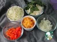 Отварим рис до полуготовности! Подготовим все необходимые овощи: капусту нашинковать, лук мелко порубить, морковь и болгарский перец нарезать кубиком, а патиссон натереть на крупной терке |