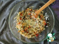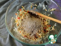 В миске смешайте нарезанные овощи, тушеную капусту, отваренный рис, соль и специи. В качестве приправы я использовала молотый красный острый перец, перец чипотль, кориандр и мяту. |