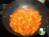 Вернуть в сковороду курицу. Перемешать и готовить пару минут. |