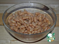 Фасоль замочить на несколько часов в воде, отварить до готовности, откинуть на сито (можно взять консервированную фасоль, две стандартные банки. Жидкость необходимо слить.) |