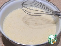 Добавить к взбитым яйцам молоко (3 стакана), воду (1/2 стакана), соль (1 ч. ложка), остальную часть сахара. |