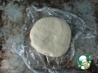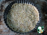Тесто разделите на две равные части. Одну часть раскатайте и положите на дно формы, сделать небольшие бортики. Выложите начинку. |