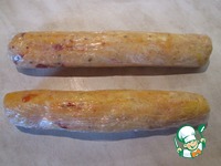 Перемешайте до относительной однородности, долго вымешивать не надо. Сформируйте две колбаски, заверните каждую в пленку и уберите в холодильник на 30-40 минут или в морозилку минут на 20. |