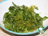 Хрен, укроп, смородину тщательно моем и режем ножницами. |