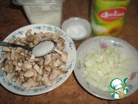 Пожарить шампиньоны с луком на растительном рафинированном масле, добавив соль, сахар, сметану. |