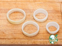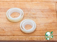 Лук очистить, нарезать толстыми колечками. Я разрезала луковицу на 3 части, но можно и на 4. Все зависит от величины луковицы и вашего желания. |