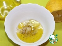 Чеснок измельчить. Смешать все ингредиенты для заправки. Приправить солью и перцем. Мед в данном случае по желанию. Вкусно и с ним и без него. |