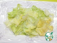 Листья салата Айсберг порвать руками, выложить на праздничное блюдо. |