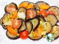Нарезать баклажан шайбами, обжарить на оливковом (или подсолнечном) по 2-3 мин с каждой стороны. |