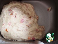 Добавить к тесту, еще раз вымесить. Оставить тесто в теплом месте на 40 минут, я оставляю в хлебопечке |