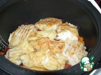 Последний слой из оставшихся овощей и томатной пасты, выставляем режим "Тушение", на 40 минут |