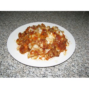 Затем лук, следом морковь и смазываем томатной пастой, слегка поливаем маслом, так повторяем, пока не закончатся продукты |