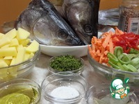 Это то, что нам понадобится. Рыбный суповой набор заливаем холодной водой, добавляем лавровый лист, белый перец горошком, соль доводим до кипения, снимаем пену и варим пару минут. |
