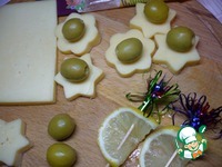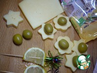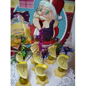 Дальше все просто: шпажку с лимоном одеваем на сыр с оливками. На этом собственно и заканчивается все оформление канапе на шпажках с сыром. Приятного аппетита! |