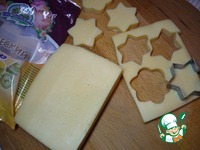 С помощью металлических вырубок для печенья я вырезала из сыра основание для канапе. |