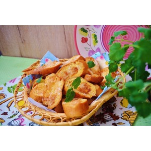 В сахар трем лимонную цедру и хорошенько перетираем его руками, чтобы пошел аромат и сахар начал золотиться. Так можно сделать сахар с любым ароматом - здесь подойдут и цитрусы, и зелень мяты, мелиссы. В общем - фантазируйте. (Если ароматизируете сахар зеленью, не режьте ее очень мелко, а просто перетирайте с веточками, тогда их легко можно будет извлечь, оставив лишь флер ароматной травки!). Вообще этот процесс можно доверить "неожиданным" гостям - пока вы смазываете ломтики, все как раз будет готово. Да и для мелкой моторики детишек процесс хороший - тут главное, чтобы осталось чем посыпать наши заготовки! |