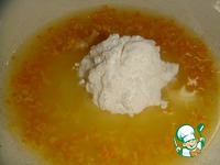 Добавить цедру от половины апельсина и 50 г свежевыжатого апельсинового сока, перемешать. Ввести просеянную муку, разрыхлитель. |