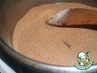 Манку пережарить. В сухой казан насыпать манку и соль жарить еe постоянно помешивая до золотисто-коричневого цвета, на большом огне, следить чтобы не подгорело. |