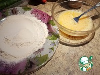Яйца, соль смешиваем с водой. Подготавливаем муку. |