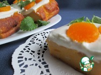 Затем разрезать на квадраты. Сверху выложить фигурки из тыквы и мяту. Наши пирожные готовы! |